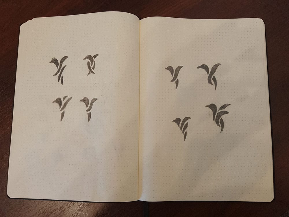 Szkicujemy dużo, aż znajdziemy nasze najlepsze pomysły do pokazania klientowi. Jeśli nie mamy pomysłów, możemy skorzystać z naszych map myśli, które pomogą nam znaleźć interesujące propozycje do narysowania czegoś ciekawego. Wybieramy te najlepsze i później próbujemy z nimi eksperymentować.